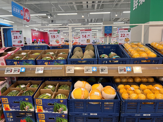 折扣生意实际上考验的是供应链能力,自营和定制商品是消费者关注的重点之一。京东七鲜、京悦、京鲜舫、京东京造等京东自有品牌目前均已入驻折扣超市,部分产品比线上更具价格优势。如京鲜舫100%橙汁1L装在电商平台售价约27元/1L,但在折扣超市的售价为9.9元,仅为前者的1/3。